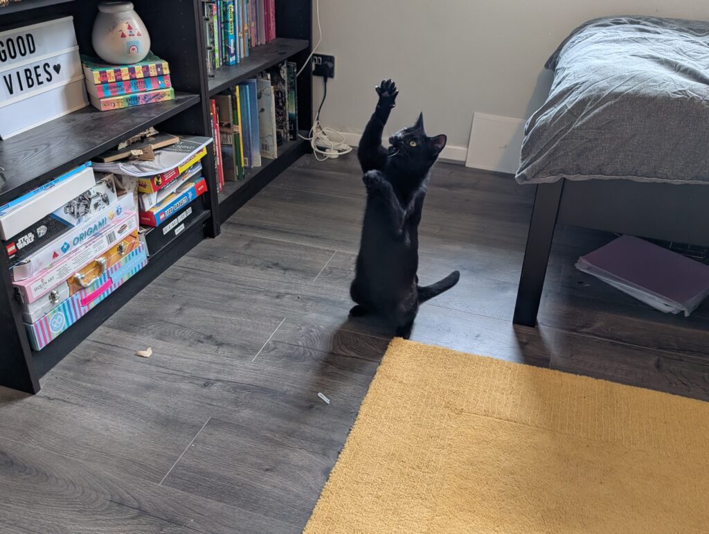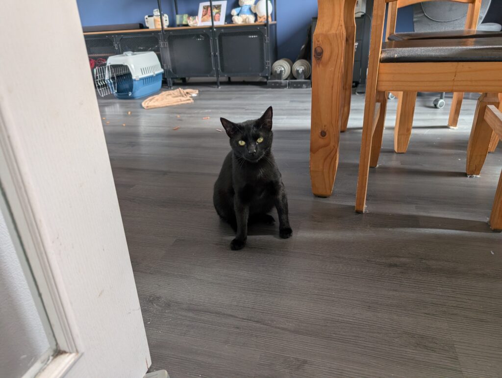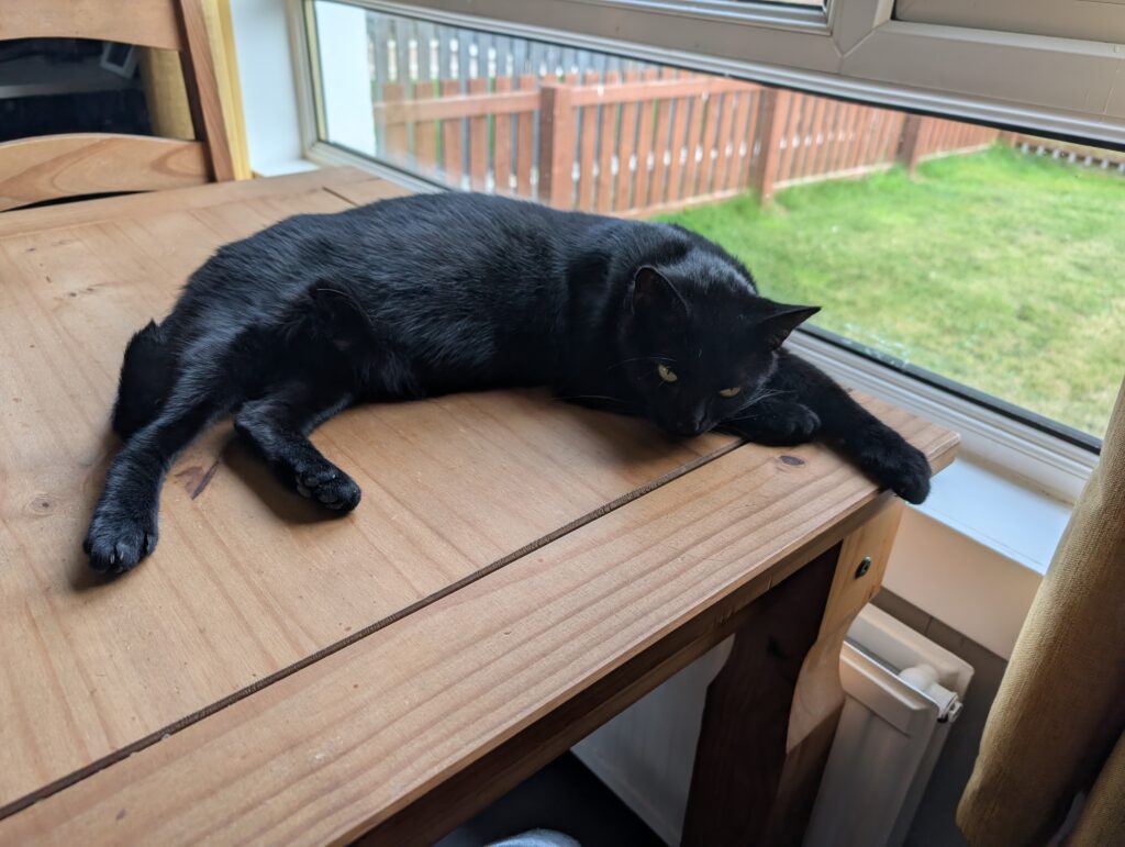 We got a new Cat on the 6th September 2025 from the Fife Cat Shelter. Her name is Minnie and she is 2 years old. She is settling into her new home now and is enjoying her food the most